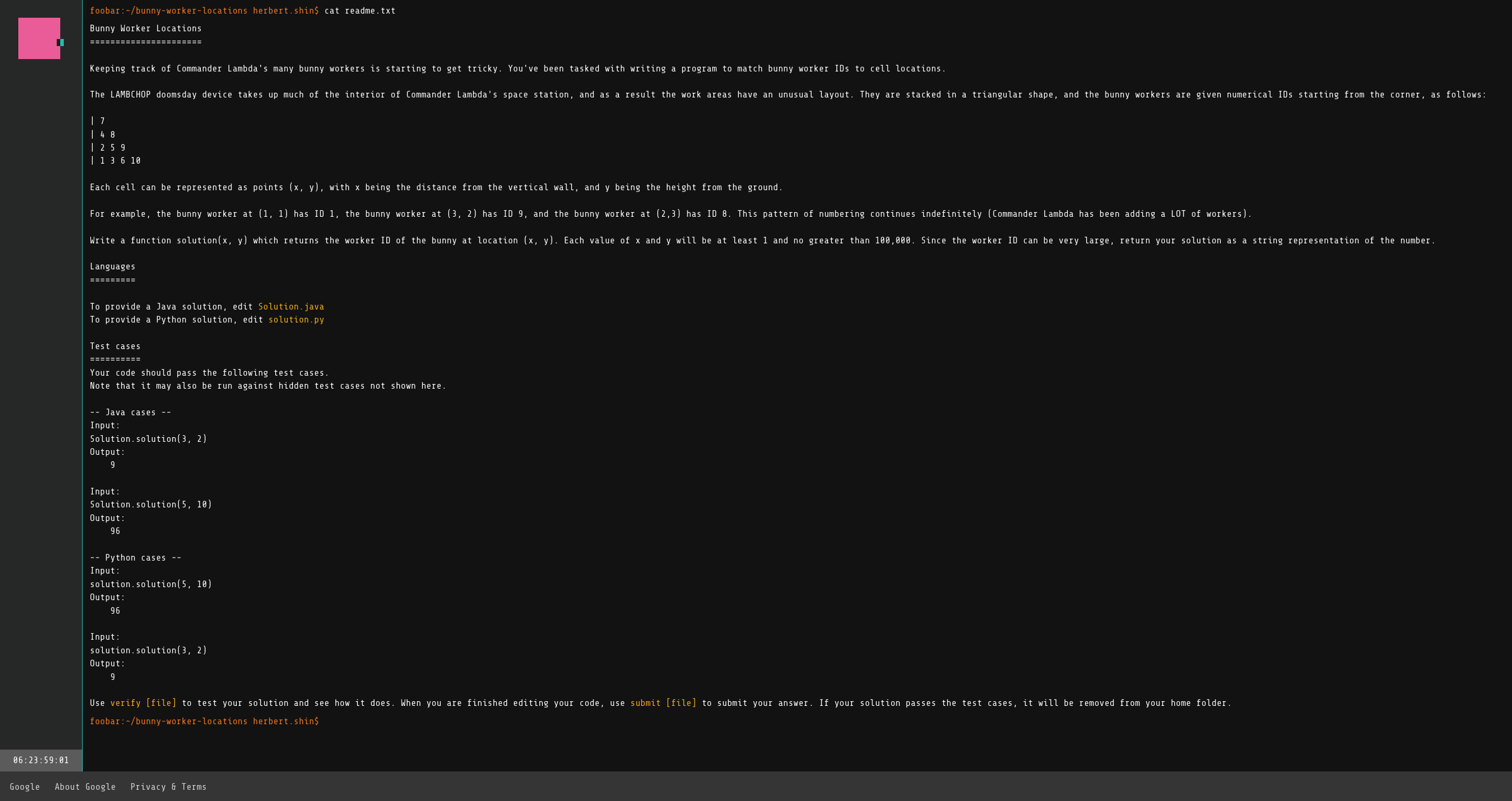 I was reading up on dependency injections in Go and saw a “Curious developers are known to seek interesting problems. Solve one from Google?” prompt appear in the Google search bar. In this blog post, I’ll provide solutions to those that I have solved up to the one that I couldn’t.