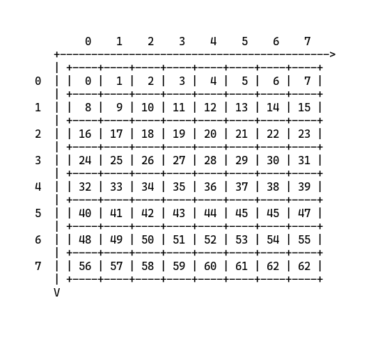 So aside from the traversal logic, we can get around the above sub-problem by pre-processing the position values to their respective (x, y) coordinates based on the below coordinate mapping.