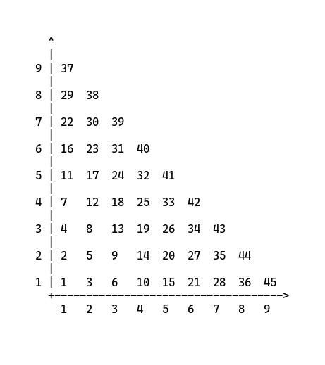 The task is to find which number is at (x, y) where x and y are both in (0, 100,000] range as such.